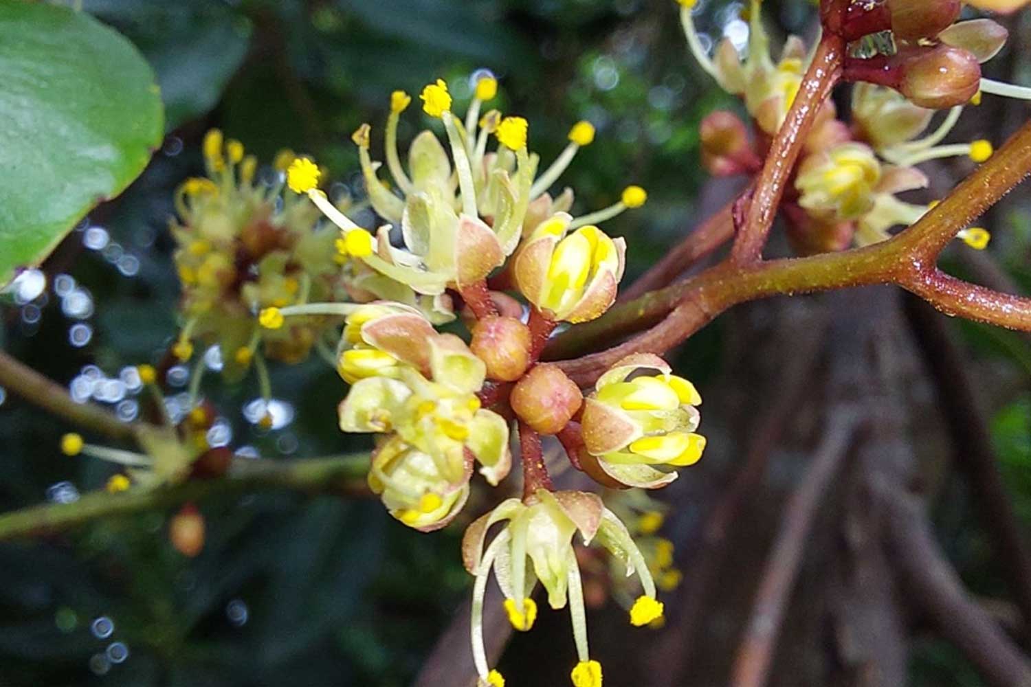- ดอกกำจัดเถา ดอกออกเป็นช่อบริเวณง่ามใบและปลายยอดโดยก้านช่อดอกจะมีขนละเอียดขึ้นปกคลุม และส่วนดอกย่อยช่อดอกจะยาวได้ถึง 15 เซนติเมตร มีขนาดเล็กเป็นแบบแยกเพศ ในต้นเดียวกัน โดยดอกเพศผู้ยาวประมาณ 4-5 มล. กลีบดอกมี 4 กลีบ ลักษณะเป็นรูปรีหรือรูปไข่ ยาวประมาณ 2-3 มล. มีสีเหลืองอมเขียวและมีกลีบเลี้ยง ขนาดเล็ก 4 กลีบ ลักษณะเป็นรูปสามเหลี่ยม โคนกลับเชื่อมติดกัน มีเกสรเพศผู้ 4 อัน ส่วนดอกเพศเมียมีลักษณะคล้ายดอกเพศผู้ แต่จะต่างกันตรงที่ดอกเพศเมียจะมีขนาดเล็กกว่าและมีรังไข่ใหญ่เห็นได้ชัด