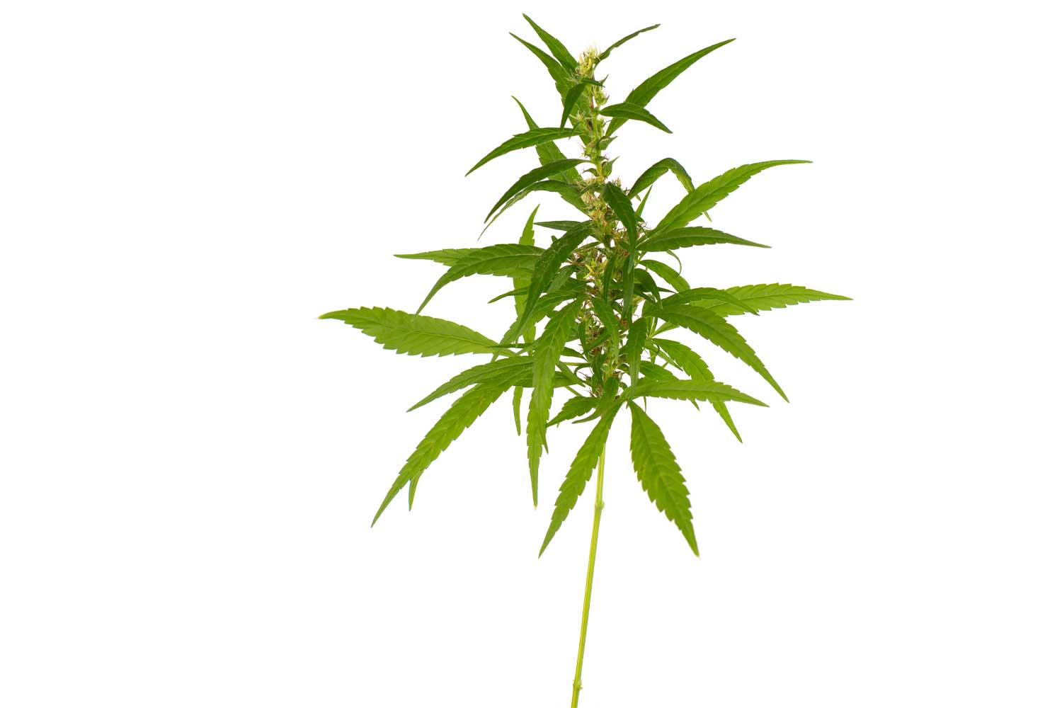 - ต้นกัญชา เป็นพืชล้มลุกมีอายุได้แค่เพียงปีเดียว ส่วนของรากเป็นระบบรากแก้ว (Tap root system) มีรากแขนงจำนวนมาก ส่วนของลำต้นพบว่าลำต้นตั้งตรง สีเขียว สูงประมาณ 1-3 เมตร มีลักษณะอวบน้ำเมื่อเป็นต้นกล้า เริ่มมีการสร้างเนื้อไม้เมื่อเจริญได้ 2-3 สัปดาห์ การเจริญเติบโตของต้นจะช้าในช่วง 6 สัปดาห์แรก หลังจากนั้นจะเพิ่มความสูงอย่างรวดเร็ว จนมีความสูงเฉลี่ยคงที่ คือ ประมาณ 200 เซนติเมตร เนื่องจากมีการออกดอก เปลือกของลำต้นสามารถลอกออกเพื่อใช้ประโยชน์จากเส้นใย โดยเปลือกนอก (primary bast fibers) ให้เส้นใยที่ยาว เหนียว แต่ค่อนข้างหยาบ ส่วนเปลือกในที่ติดกับเนื้อไม้ (secondary bast fibers) ให้เส้นใยที่ละเอียดกว่าแต่สั้นกว่า